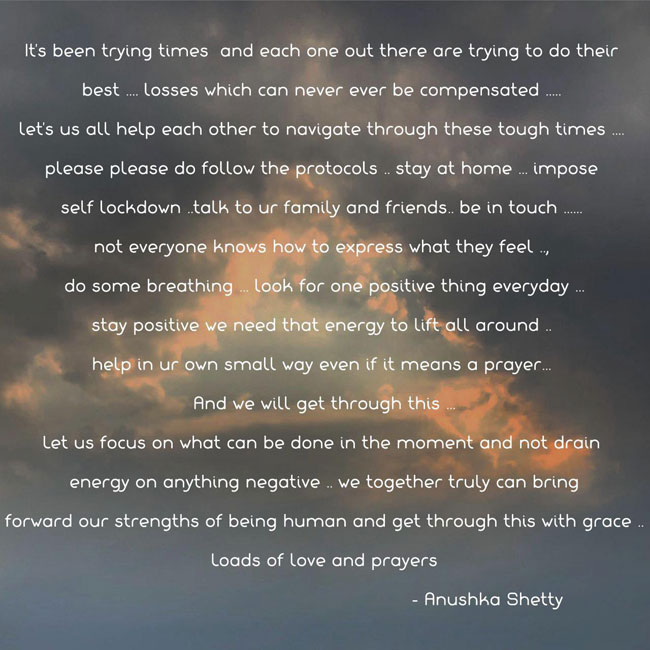కష్టకాలాన్ని మనం అధిగమిస్తాం: అనుష్కాశెట్టి