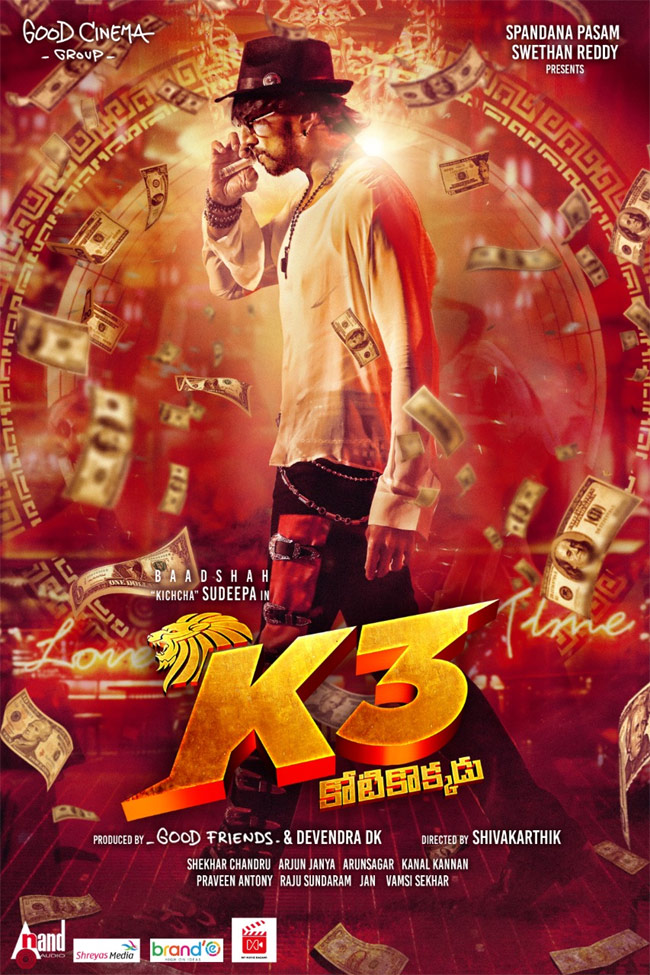 కన్నడలో భారీ అంచనాలున్న 'కోటిగోబ్బ 3' చిత్రాన్ని.. తెలుగులో 'కె3 కోటికొక్కడు' టైటిల్తో స్పందన పాసం, శ్వేతన్ రెడ్డి సమర్పణలో దేవేందర్ డీకే మరియు గుడ్ ఫ్రెండ్స్ సంయుక్తంగా తెలుగు ప్రేక్షకులకు అందించనున్నారు. 'కె3 కోటికొక్కడు' ఫస్ట్ లుక్ పోస్టర్ను ప్రముఖ దర్శకులు మారుతి, బాబీ, గోపీచంద్ మలినేని సంయుక్తంగా విడుదల చేయడం విశేషం. కన్నడ సూపర్ స్టార్ కిచ్చా సుదీప్ సిగరెట్ వెలిగిస్తూ డాలర్స్ మధ్య నుండి నడుస్తూ ఉన్న ఈ స్టైలిష్ లుక్ ఆకట్టుకుంటోంది. డబ్బింగ్ కార్యక్రమాలన్నీ పూర్తిచేసి ఏప్రిల్ 4వ వారంలో ఈ చిత్రాన్ని కన్నడ మరియు తెలుగు భాషల్లో ఏకకాలంలో అత్యధిక థియేటర్లలో విడుదల చేయడానికి సన్నాహాలు చేస్తున్నట్లుగా మేకర్స్ ప్రకటించారు.