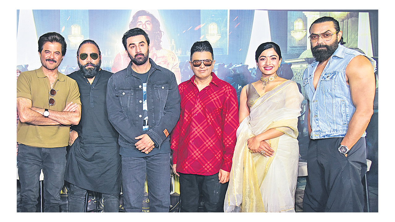 ‘‘తెలుగు చిత్రసీమ నాకెంతో ప్రత్యేకం. నా మొదటి సినిమా ప్రమోషన్కి హైదరాబాద్ వచ్చా. నా తొలి ఆటోగ్రాఫ్ ఇక్కడే ఇచ్చా’’ అన్నారు రణబీర్ కపూర్. ఆయన కథానాయకుడిగా నటించిన ‘యానిమల్’ డిసెంబరు 1న పాన్ ఇండియా స్థాయిలో విడుదల కాబోతోంది. ఈ సందర్భంగా ప్రమోషన్లలో భాగంగా సోమవారం హైదరాబాద్ వచ్చారు. రణబీర్ కపూర్ మాట్లాడుతూ ‘‘తెలుగు ప్రేక్షకులు సినిమాల్ని ప్రేమించే విధానం అపూర్వం. అది చూసినప్పుడల్లా రెండు తెలుగు రాష్ర్టాలు నన్ను దత్తత తీసుకొంటే బాగుంటుంది అనిపిస్తుంది. జంతువుల స్వభావాన్ని, వాటి ప్రవర్తననీ మనం ఊహించలేం. ఈ సినిమాలో నా పాత్ర కూడా అలానే ఉంటుంది. అందుకే ‘యానిమల్’ అనే పేరు పెట్టాం’’ అన్నారు. ‘‘నా పునాది దక్షిణాదిలోనే పడింది. నా తొలి చిత్రం ‘వంశ వృక్షం’ బాపు గారి దర్శకత్వంలో నటించాను . ‘యానిమల్’ తెలుగులో నా రెండో సినిమా. సందీప్ రెడ్డి కథ చెప్పగానే మరో ఆలోచన లేకుండా ఒప్పుకొన్నా’’ అని అనిల్ కపూర్ చెప్పారు. దర్శకుడు సందీప్ రెడ్డి వంగా మాట్లాడుతూ ‘‘రణబీర్ కపూర్ నాకంటే యేడాది చిన్నోడు. లేదంటే తన నటనకు కాళ్లు మొక్కేవాడ్ని. అంత గొప్ప ప్రతిభ కనబరిచాడ’’న్నారు. ‘‘సందీప్ రెడ్డి కథల్ని, పాత్రల్ని మలిచే తీరు చాలా గొప్పగా ఉంటుంది. ఈ సినిమాలో నాక్కూడా ఓ గొప్ప పాత్ర దొరికింద’’న్నారు రష్మిక.