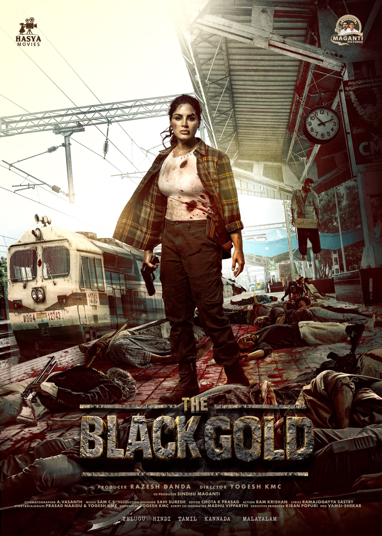 తాజాగా దీపావళి పండుగను పురస్కరించుకని ఆదివారం రాత్రే బ్లాక్ గోల్డ్ (The Black Gold) అంటూ ఈ చిత్రం టైటిల్ రివీల్ చేసిన మేకర్స్ తాజాగా మంగళవారం ఈ సినిమా నుంచి సంయుక్త ఫస్ట్ లుక్ను సోషల్ మీడియా ద్వారా విడుదల చేశారు. ఈ లుక్లో కొత్త మాస్ అవతార్లో సంయుక్త లుక్ అదిరిపోయేలా ఉంది. రైల్వే స్టేషన్లో రక్తం మడుగులో దుండగులంతా పడి ఉండగా చేతిలో గన్తో స్టన్నింగ్ గా ఉంది. దాదాపు 16 ఏండ్ల క్రితం చితంకాయల రవి సినిమాను డైరెక్ట్ చేసిన యోగి (YOGESH KMC) మరలా ఇన్నాళ్లకు ఈ సినిమాకు దర్వకత్వం వహిస్తుండడం విశేషం.